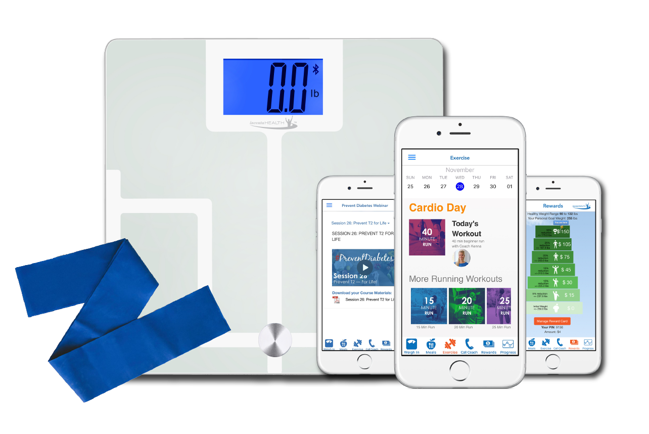After joining, you'll receive your wellness kit in the mail which includes a wireless scale, exercise band and more.